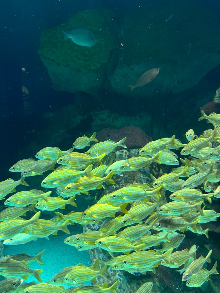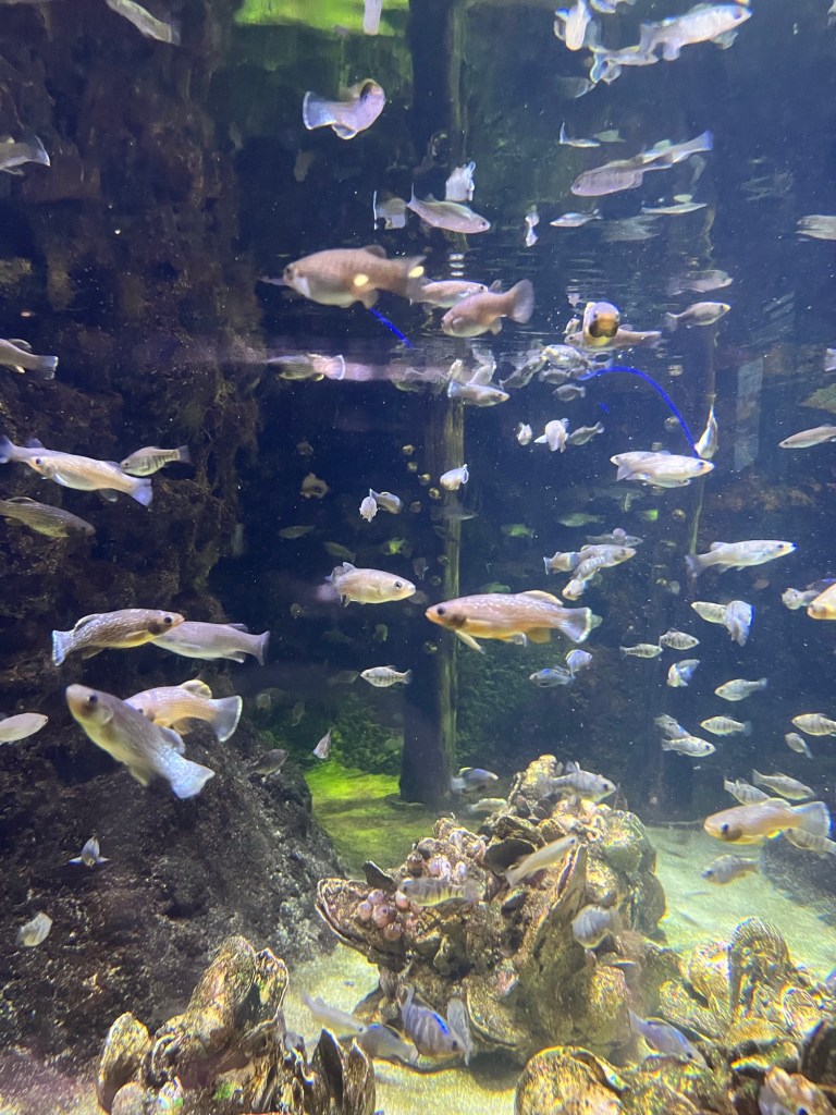 Tropical fish are just about my favorite animals, and the iPhone does a spectacular job in low light. I don’t even have the newest version with AI to enhance the photos, of which I was very glad. It showed that I actually did know what I was doing most of the time. 😛 Of all the fish I saw, I was entranced by the community tanks because that is the setup I would like for my own house… just not saltwater. I don’t have the patience for it and the startup costs are much larger. Additionally, my apartment is really not set up for an aquarium unless I can run a Python (aquarium cleaner) from the bathtub. Otherwise, the pressure in my sinks would make it take all day to change the water.