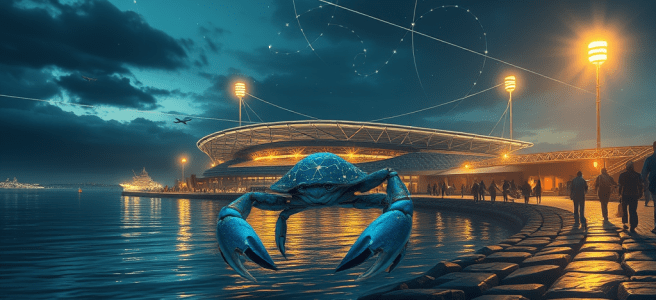 The mascot arrived almost automatically. The Starcrab — a blue crab with a subtle constellation pattern across its shell — is both cosmic and unmistakably local. It’s playful without being silly, mythic without being self‑serious. You can imagine it dancing on the sidelines, but you can also imagine it stitched onto a scarf or glowing on a banner during a night match. It’s the Bay’s most iconic creature, reframed as a guiding light.