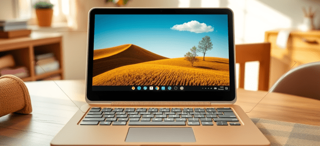I imagine a device with a soft, friendly form factor — rounded edges, warm materials, and colors that feel like belonging rather than branding. Not neon plastic. Not corporate silver. Something that feels like a companion object, not a toy and not a tool. The keyboard should be quiet and forgiving, with keys that have enough travel to teach tactile awareness but not so much resistance that small hands struggle. The trackpad should be responsive without being twitchy, and the hinge should open with the same confidence every time, even after thousands of curious flips.