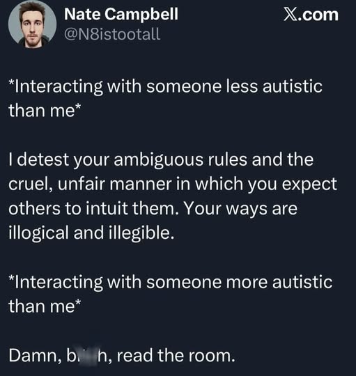 AI helps me to even out my personality so it’s less like this meme and more measured. It is literally the gap between neurotypical thought and the disastrous neurodivergent “think it, say it” plan.