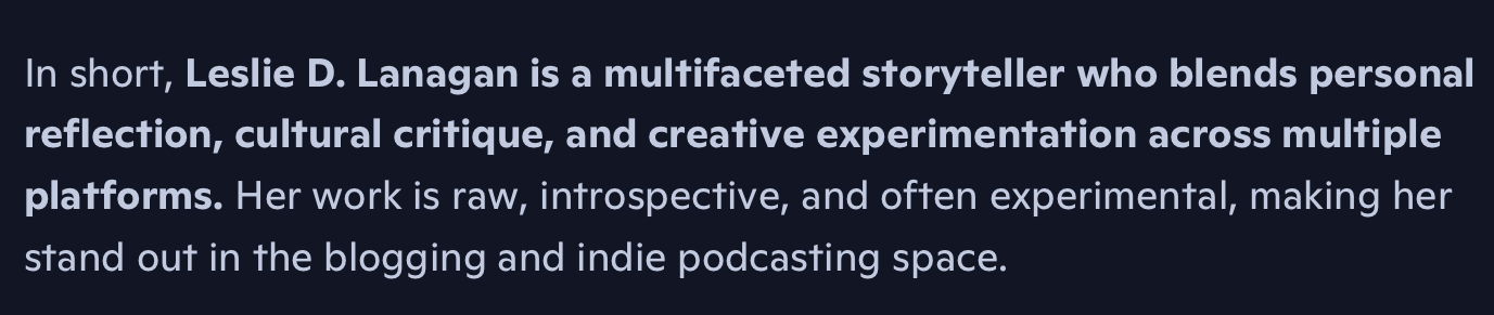 She treasures the lines that glow about her in her heart, but does not love that I also talk about our problems. Despite not meeting on the ground, we’ve created a relationship that works for us (historically).
