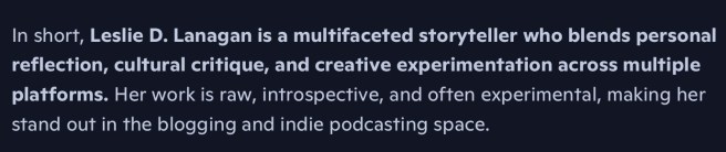 I have resisted the temptation to become sort of lifestyle blogger because the subject matter would carry less of an emotional punch, but it would feel like selling out. I like that no one pays attention to me in the grand scheme of things, so I am not beholden to advertisers. No one is telling me how and what to write, and I would buckle under that kind of structure. My writing is good because it’s not trying to be anything it’s not. I’m stream of consciousness, and you’re invited.
